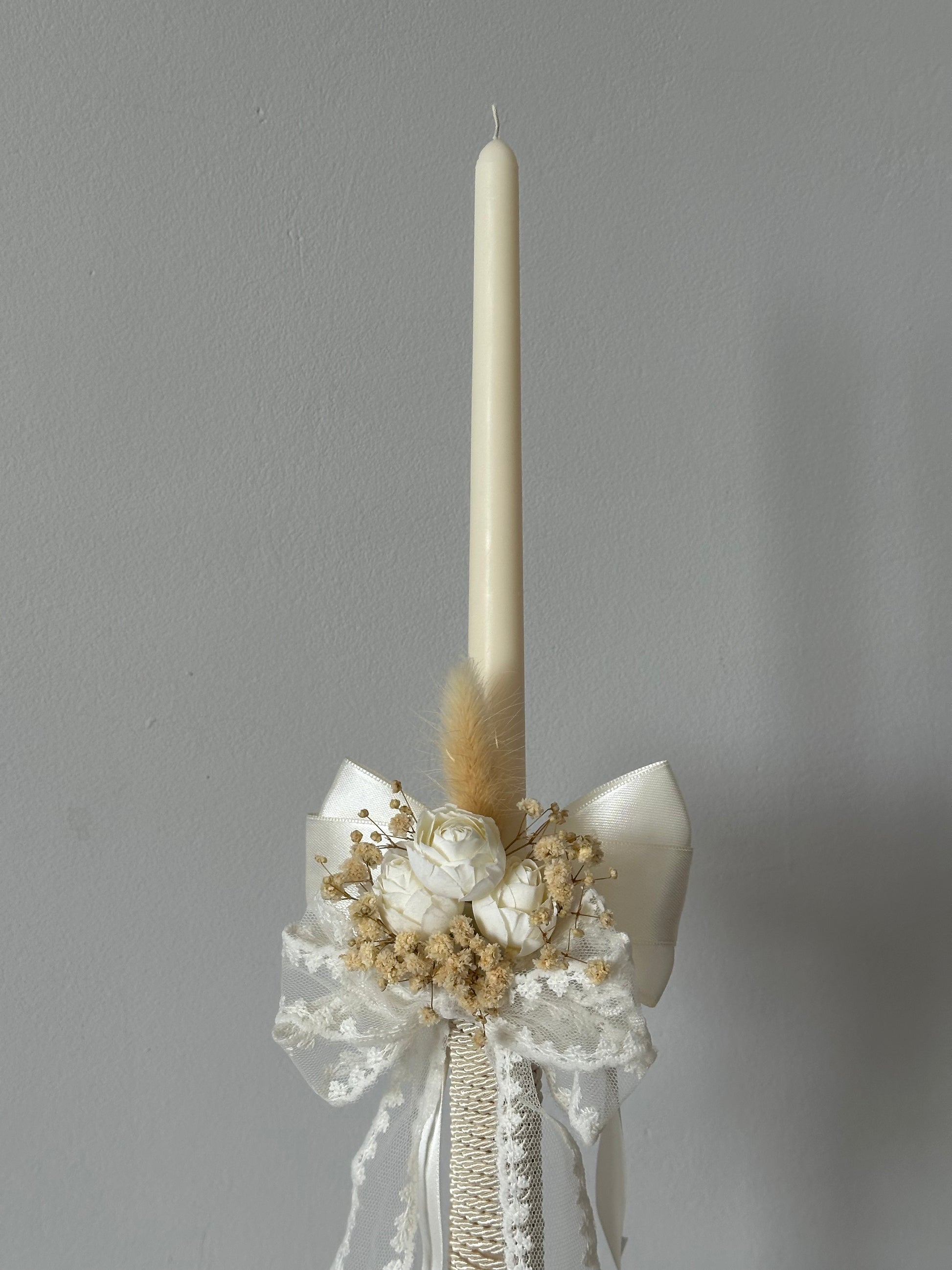 Две стълбови свещи – елегантни и високи, символ на небесната светлина и молитвена хармония.